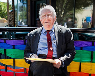 Photo Credit: Frank sitting in front of The Dupont Italian Kitchen cafe on 17th Street in the Dupont Circle neighborhood of Washington, along the stretch of 17th named in his honour as "Frank Kameny Way" by the DC government in 2010.