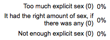 I don't think you could do it any better from what you say. The interesting result for me was the percentage ticks to the different questions, which tells the author things like, people found the stories romantic, could identify with the characters and thought they were realistic. The results are all in the questions.
