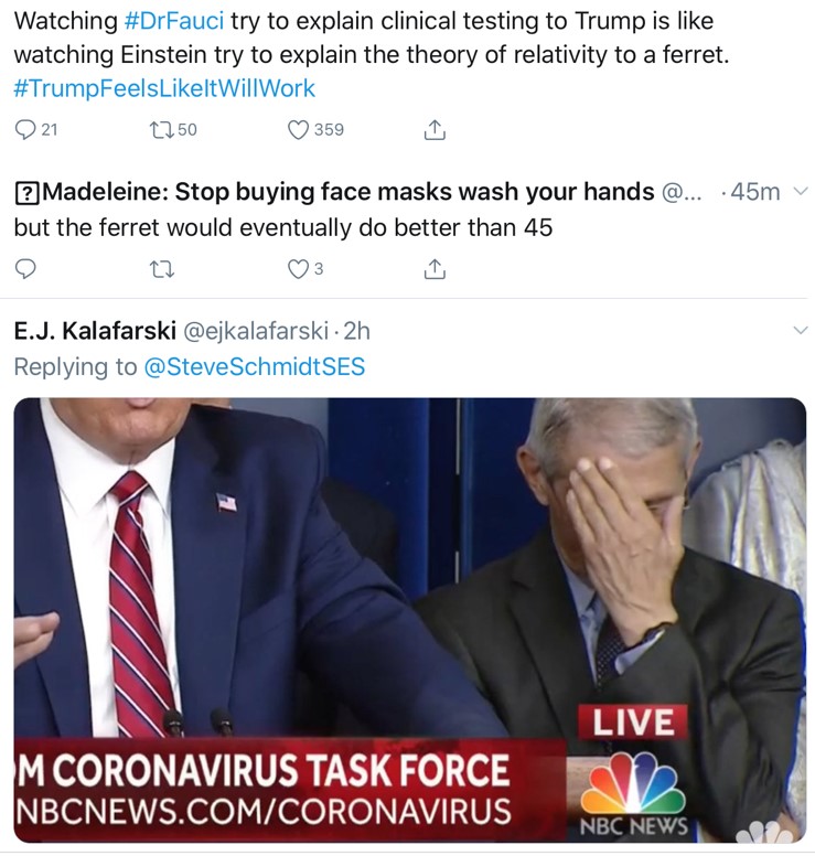 As a wit put together on Twitter this morning, after today's performance, here's Anthony Fauci, MD, in a state of chagrin!