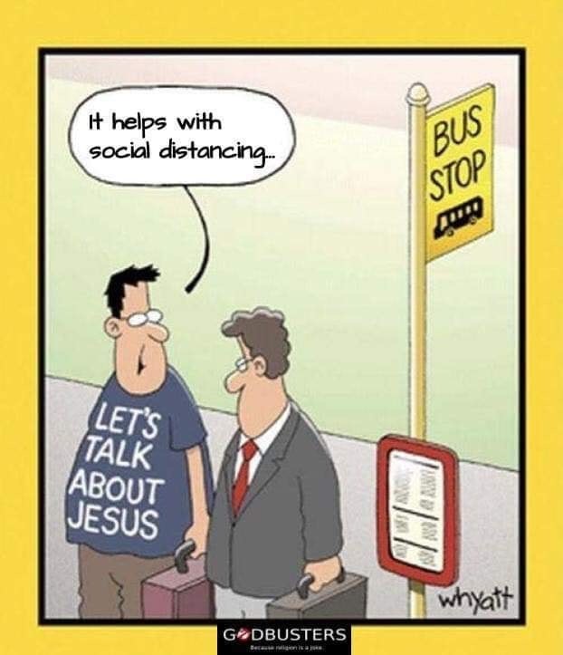 I wonder if those who have faith and felt the need to go to a building and perform rhythmic chanting in the past will realise that they just need to worship their deity where they are, and NOT give money to Mr Preacher Man.