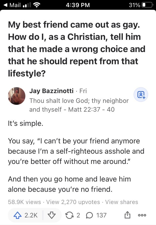 Here's a classic response to a homophobe that appeared on Quora this week: