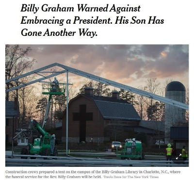 This post will look long, but it's a quick read unless you want to click the links and read the articles. Let's just take the role of Franklin Graham and Donald Trump as an example. In February of 2018, the NY Times published an article titled "Billy Graham Warned Against Embracing a President. His Son Has Gone Another way."