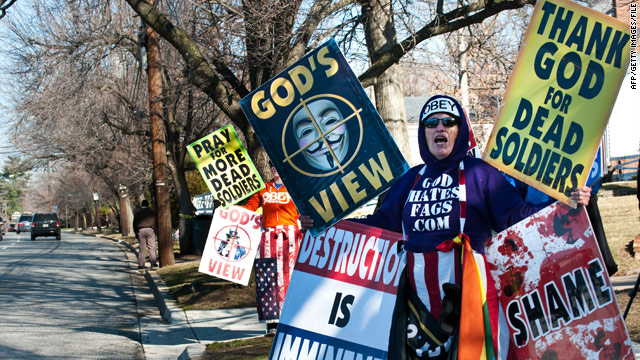 Select members from the church decided to protest outside the Westminster, Maryland, church where Snyder's funeral was being held. Fred Phelps and other family members who make up most of the Westboro Baptist Church have picketed numerous U. S. military funerals to draw attention to their view that U.S. causalities in the wars in both Afghanistan and Iraq, are "God's punishment for the nation's tolerance of fags," according to church spokesperson Shirley Phelps-Roper.
