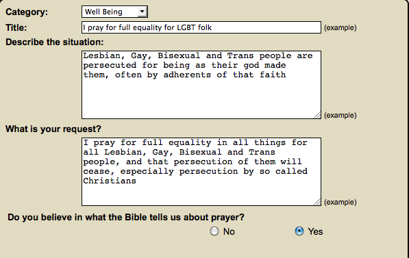 I found, quite by chance, a supposedly Christian web site allowing me to offer prayers. I registered and started to post this: