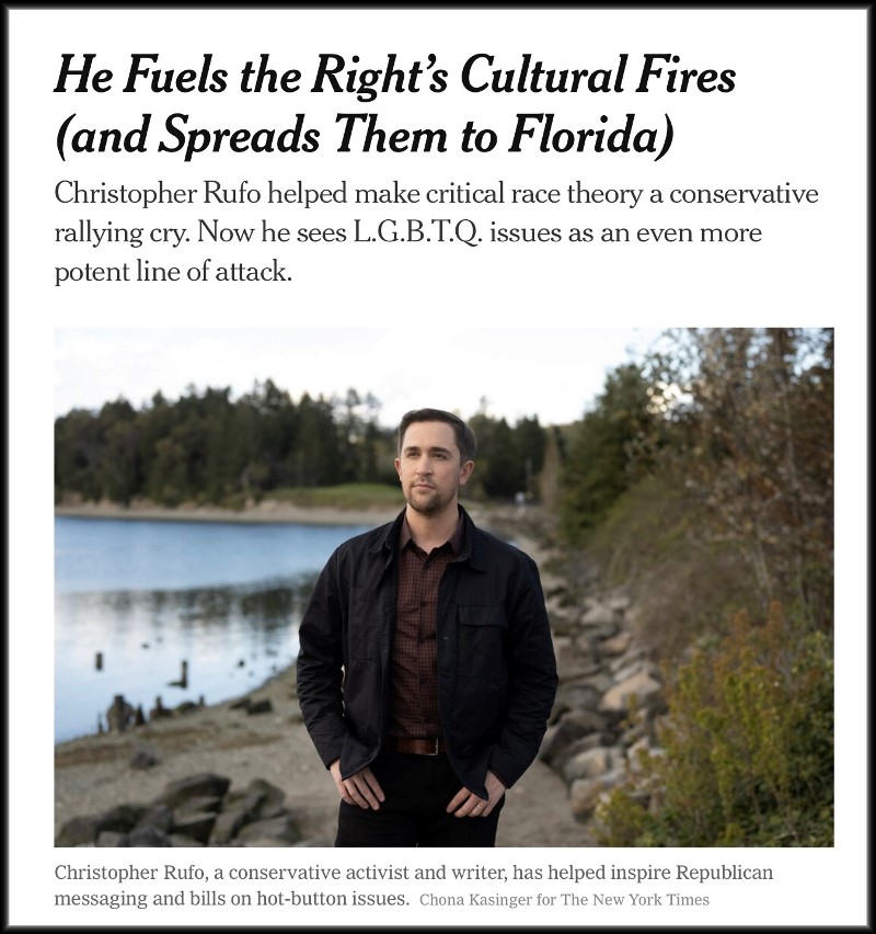 Read the article in the NY Times about how Christopher Rufo has fine tuned his core ideology that has become the central theme for conservative Republican politicians here.
